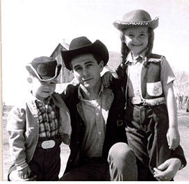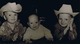 And that’s when her love of the Western life brought her to .. Greg Alexander, wellknown Stampede volunteer, horseman and rancher. Greg has farmed and ranched in the Calgary area all his life and operated Just Passing Horse Transport and Bereavement Services. Wearing his hat comes naturally for Greg, too, as his picture at left shows, with younger brothers Jack and Bruce.